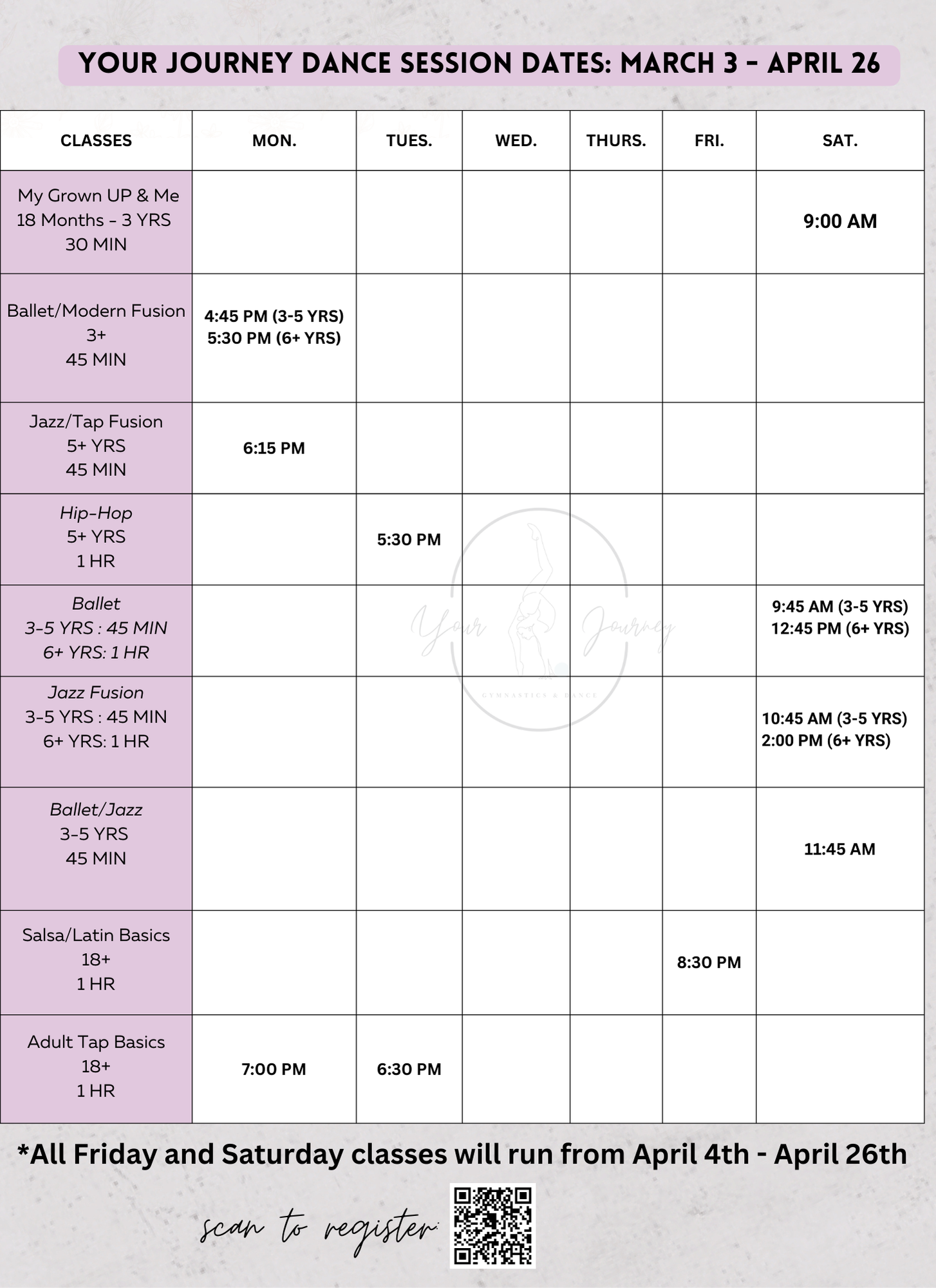 To request a makeup class, please visit: Your Journey Gymnastics & Dance Landing | Customer Portal (iclasspro.com)